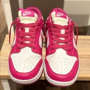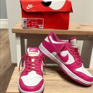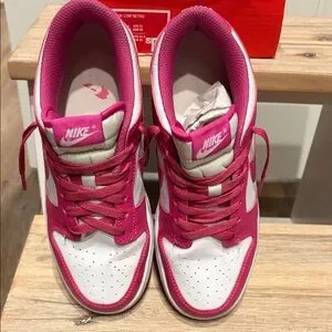 Bold Nike Dunk Low Retro in pink and white. Ideal for everyday style. Gently worn a handful of times, great condition.