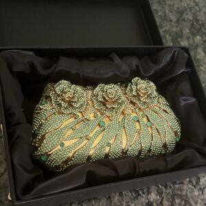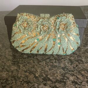 Gold and pale Green high quality Embellished Clutch NWT