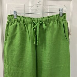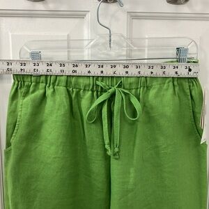 NWT Vibrant green cropped linen pants by Jones New York. vintage.Comfortable and relaxed fit with drawstring, elastic waist. Size 12
