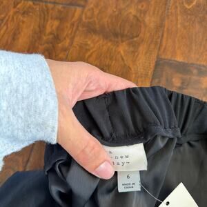 A New Day Dress Pant Black Flowy Satin Side Stripe Career Classic Womens Size 6