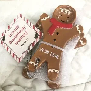 Gingerbread Galore! Brand new with tags! Adorable 3-count set of gingerbread figural ceramic measuring spoons from Bullseye's Playground! Perfect for bakers, cooks, or anyone who loves a dash of whimsy in their kitchen. Makes a great Christmas gift.