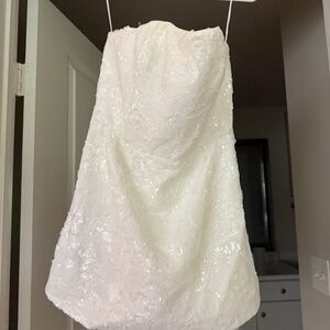 Neiman’s/Helsi: Size L, white floral sequin A-line mini dress, worn twice and dry cleaned.
