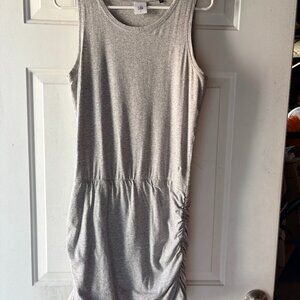 Cabi heather gray ruched casual dress, size S. Soft jersey fabric with a flattering ruched side and elasticized waist. Effortless and comfortable style.