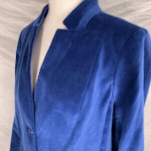 Keywords: Talbots Petites, velvet blazer, blue blazer, womens blazer, cotton blazer, size 14P, classic blazer, formal blazer, dressy blazer, career wear, petite blazer, button front blazer, lined blazer, long sleeve blazer
