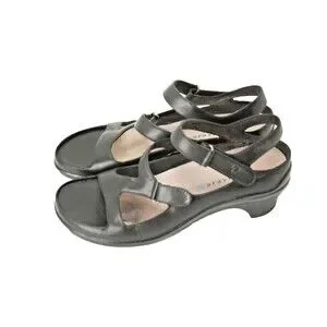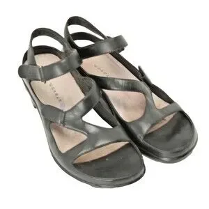 Aravon Sandals Women's sz 9.5 Black Leather Comfort Strappy Heel