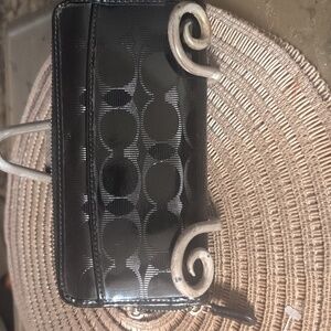 Sharp embossed logo coach print wallet in good condition measures approx 6" by 4