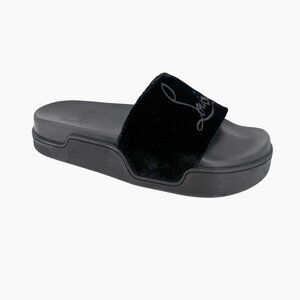 Christian Louboutin 'Navy Pool' Slide Sandals Size 37 US 7 Black Velvet Logo