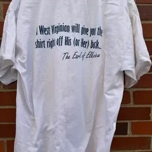 The local Kanawha County WV legend George Daugherty handed out these shirts at his music or speaking events in the 1990s.