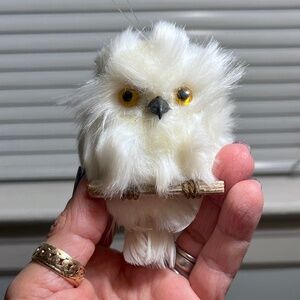 White Baby Owl Figurine Realistic Faux Fur Real Feathers Christmas Tree Ornament