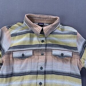Patagonia Shirt Womens Small Bearfoot Tan Striped Fjord Flannel Outdoors Hiking
