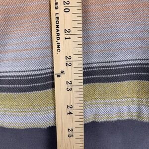 Pattern/Color: Muted multicolor horizontal stripes in tan/peach, olive, gray, and black.