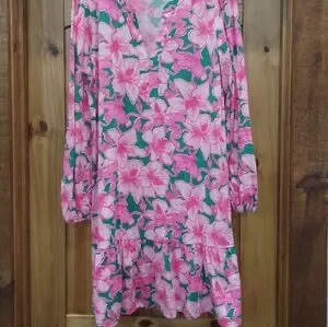Lilly Pulitzer Alyssa Tunic Midi Dress Size XL Hibiskiss Print