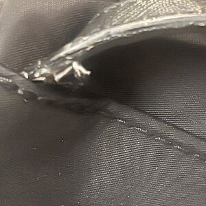 Shown in pics: Flaw there is fraying on the strap on the bottom of the backpack. Still so much life left tho. There is some spots on the bottom pf the backpack as well- could come off if good with spot treatment.