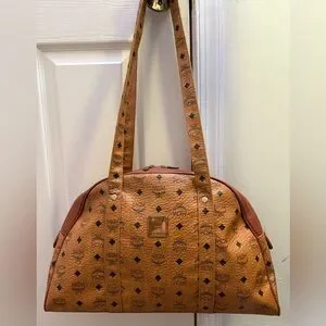 MCM Dome Satchel Shoulder Bag Monogram Vintage XL Authentic Double Zip