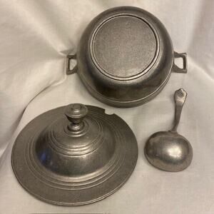 Vintage The Olde Bradford Co Pewter Soup Tureen with Spoon 12 x 7 inches
