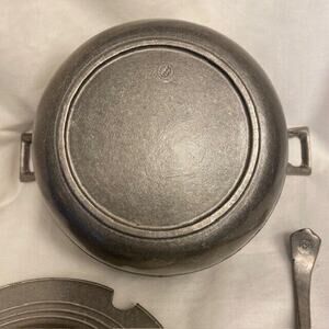 This vintage soup tureen is made by The Olde Bradford Co. in the United States (Troy, Pennsylvania). Crafted from pewter, it measures 12 inches in width and stands 7 inches tall total. The set includes a matching spoon for serving. Perfect for collectors of pewter and metalware, this piece adds a touch of elegance to any dining or display setting with its classic design and quality craftsmanship from a reputable American manufacturer. Stamp on spoon and tureen and lid.