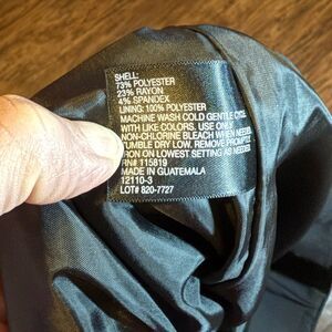 The Worthington Womens Size 10 Black Pencil Skirt is a stylish and versatile piece of women's clothing. Made from a blend of polyester, spandex, and rayon, this skirt features a solid black color and a zip closure for easy wear. The skirt is lined for added comfort and quality, making it perfect for everyday wear or a more formal occasion. Machine washable for convenience, this skirt is a great addition to any wardrobe, especially for those who appreciate a mini skirt style.