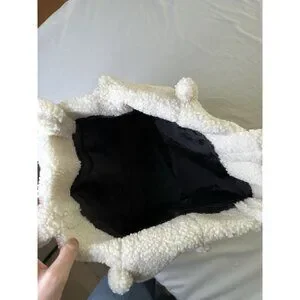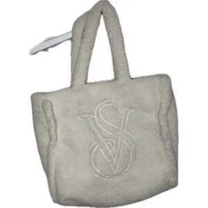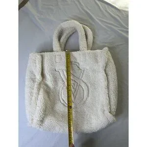 Victoria’s Secret White Cream Sherpa Large Logo Tote Bag EUC