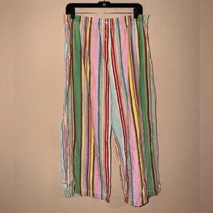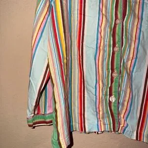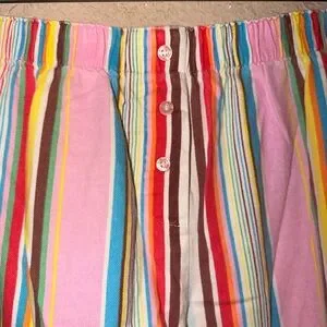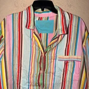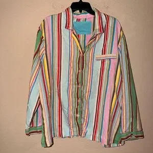 Add some nostalgia to your sleepwear collection with this vintage Victoria's Secret Rainbow Stripes Pajama Top With Matching Pants The long sleeve button-front top features a flattering V-neckline and is made of comfortable 100% cotton fabric that is machine washable. The multicolor striped pattern and pocket accents give it a fun 90s vibe, perfect for any Y2K enthusiast. This pajama top and pants are a size xl.