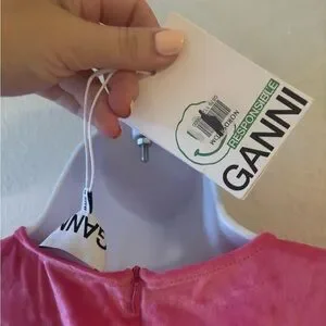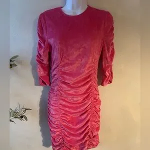 Copenhagen-based brand Ganni reshapes the meaning of Scandinavian style with its whimsy and playful approach to design. In a spirited pink color, this minidress is made from velvet and ruched along the front, side and back seams.