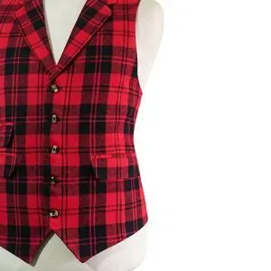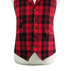Mens 46R Wool Tartan Plaid Vest Red Black Waistcoat Formal Wedding Party Dress