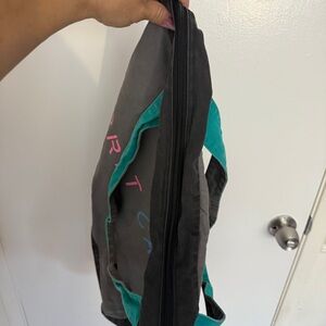 Chic Esprit tote in gray with vibrant pink and blue lettering. Ideal for daily essentials. Vintage measuring 21.5” across and 16” wide and 3” deep. Black grey blue and pink. “Esprit Cares”. Great condition tote bag!