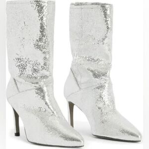 NEW! NWT ALL SAINTS Orlana Womens Metallic Pointed Toe Mid-Calf Boots size 6