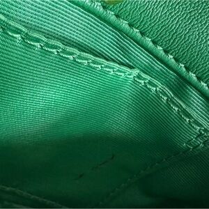 There is one small pen mark on the interior or bag as well as 3 small puncture holes also on the interior of the bag so none of these imperfections are visible from the outside