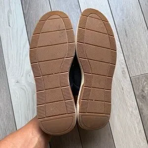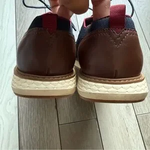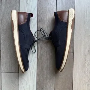 Elegant navy and brown oxfords. Perfect for versatile style.