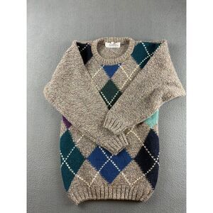 Antartex Sweater Men's S Gray Argyle Diamond Wool Jumper Fisherman Vintage