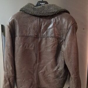 Elevate your style with this chic brown bomber jacket featuring a plush shearling collar. Perfect for adding a touch of elegance to your wardrobe.in great condition length is 24 in