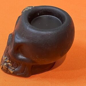 Elevate your home decor with this striking black and gold skull candle holder. Perfect for adding a gothic touch to any room.