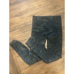 Spanx Women's Size M Tummy Control Seamless Leggings Pants Green Camo Slimming