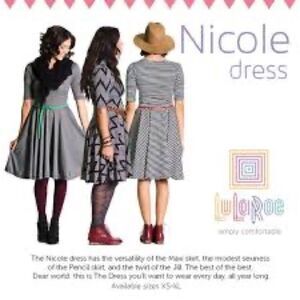 LuLaRoe Blue & Taupe Patterned Nicole Dress, size 2XL. Excellent used condition. Elbow length sleeves. 96% polyester, 4% spandex.