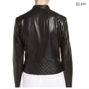 Cole Haan Black Quilted Leather Moto Jacket. Size large.