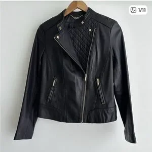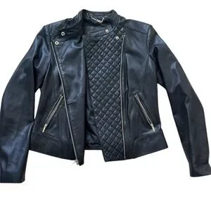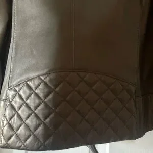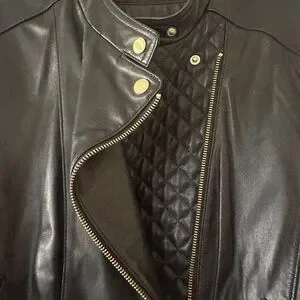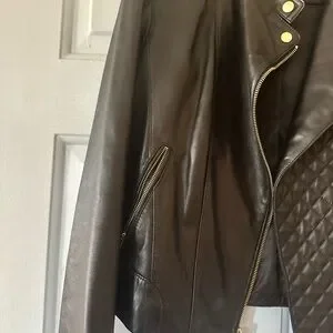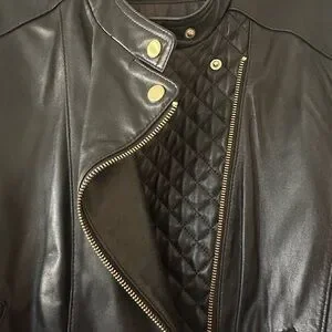 Cole Haan leather biker jacket with stylish quilted front and gold hardware. Soft genuine lamb leather. Excellent condition. Only worn a couple of times. Similar current styles retail over $500.