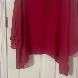 Tunic Features shark bite hem a slit lower sleeve. Vibrant pink tunic with elegant embroidery. Flowy and stylish design. Perfect for casual wear- Beautiful and perfect condition