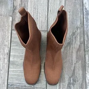Stylish ribbed ankle boots. Comfortable block heel. Run a bit big—never worn, NWOT (1/2 size too big)