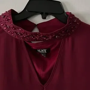 This elegant burgundy dress is perfect for any special occasion. Its flowing design and rich color make it a standout piece in any wardrobe.