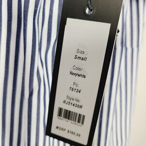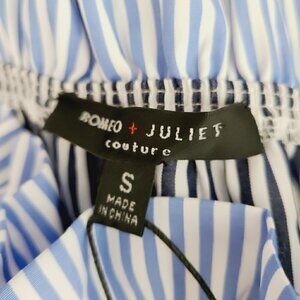 Romeo & Juliet Couture Blouse S Blue Striped Embroidered Sleeve Off Shoulder NEW