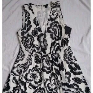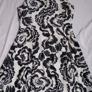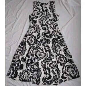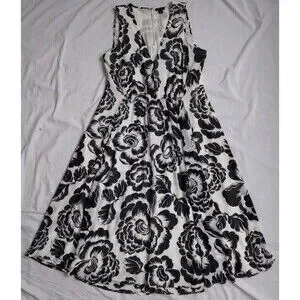 Ann Taylor Black White Floral Dress Midi Cottagecore Feminine Women's Large.
