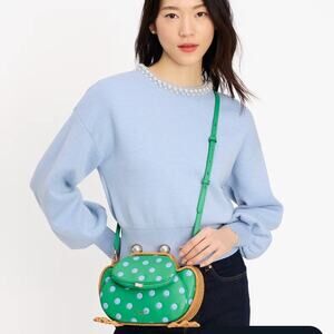 NWT Kate Spade Lily Polka Dot Wicker 3D Frog Crossbody/Green/Wicker-Leather