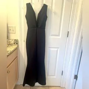 Elegant black maxi dress. Sleeveless with deep V-neck. Perfect for evening wear.