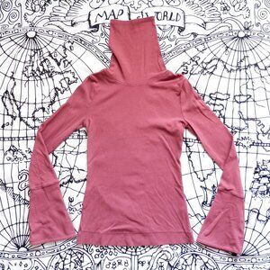 ~ Features a fold-over turtleneck and bell sleeves