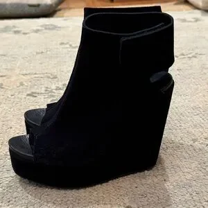 Pedro Garcia suede black wedge platform slingbacks Sz 38 / 8 US