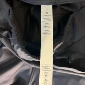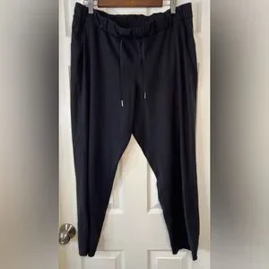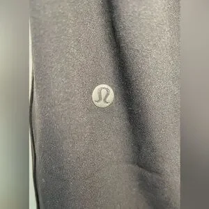 Experience ultimate comfort with lululemon athletica's black sweatpants, designed with a relaxed, tapered leg and an elastic drawstring waistband. These joggers are crafted from a soft, sweatpant-like material, perfect for lounging or casual outings. The full-length design ensures a sleek, put-together look while maintaining a cozy feel.