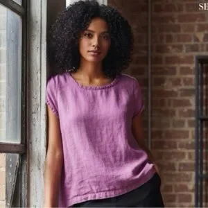 Chic lavender blouse by C&C California. Soft linen fabric. Ideal for casual elegance.