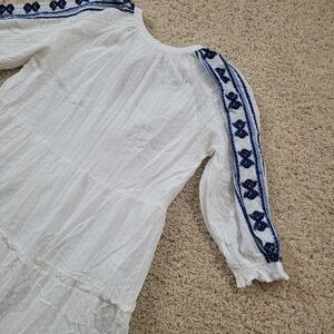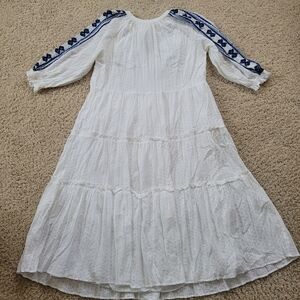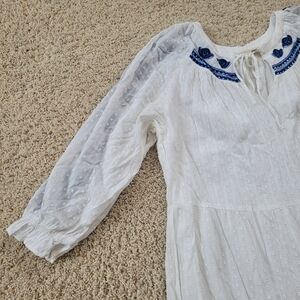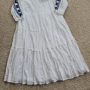 Farmers Market XL Embroidered Floral Long Sleeve Tiered Maxi Dress White