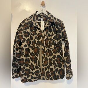 Stylish leopard print Shacket button down. Features classic collar and front pocket. Perfect for casual wear.