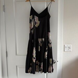 Vintage Dries Van NOTEN black midi dress with pastel floral designs. Features a flowing drop waist silhouette and delicate straps. Fits a US size 2-4 best. Worn once for a wedding. I wish it still fit.